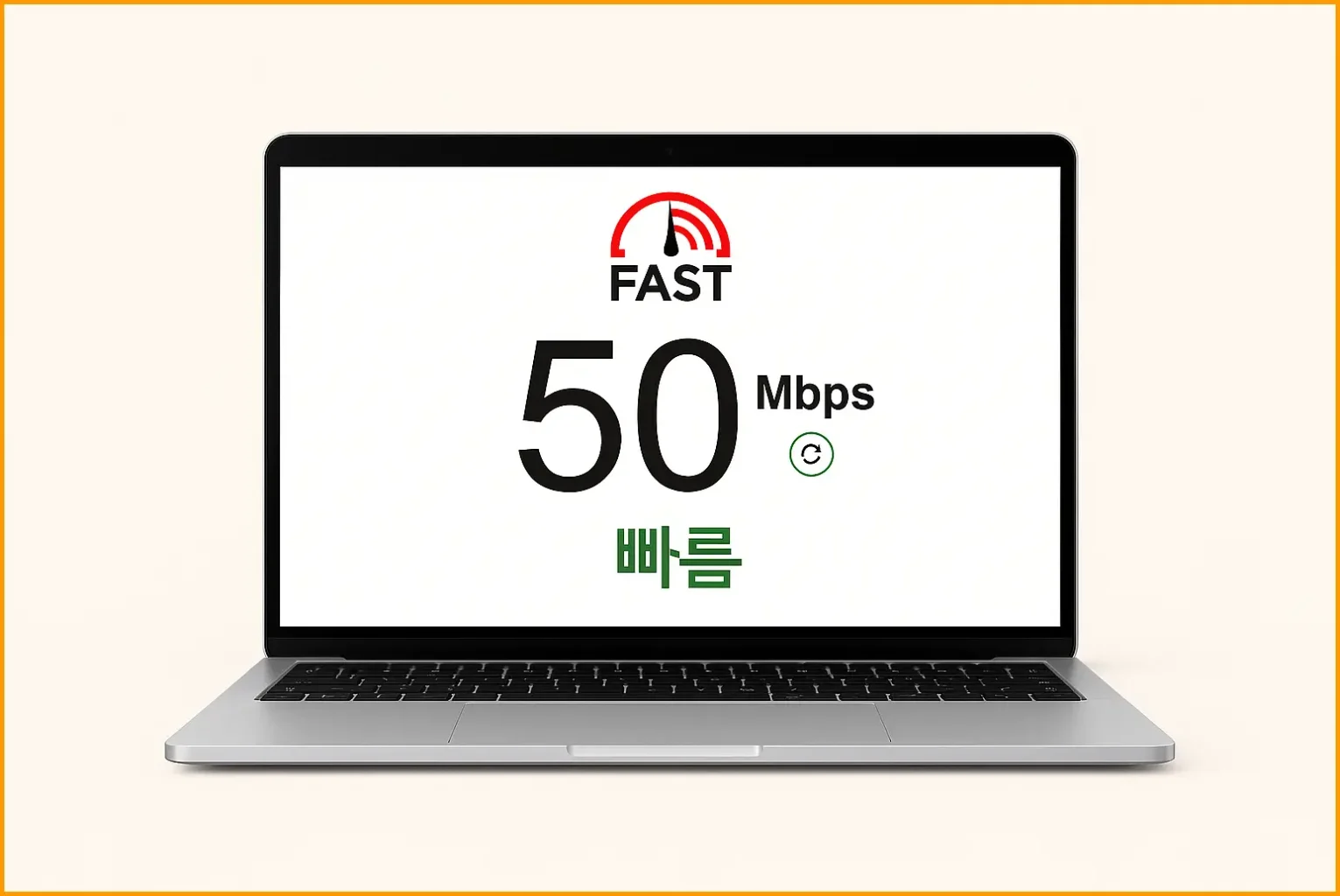 • 확인 방법: PC나 스마트폰 브라우저에서 fast.com (넷플릭스가 직접 제공하는 속도 측정 사이트)에 접속해 보세요. 여기서 측정된 속도가 15Mbps 이하라면 4K 재생이 어려울 수 있습니다.
