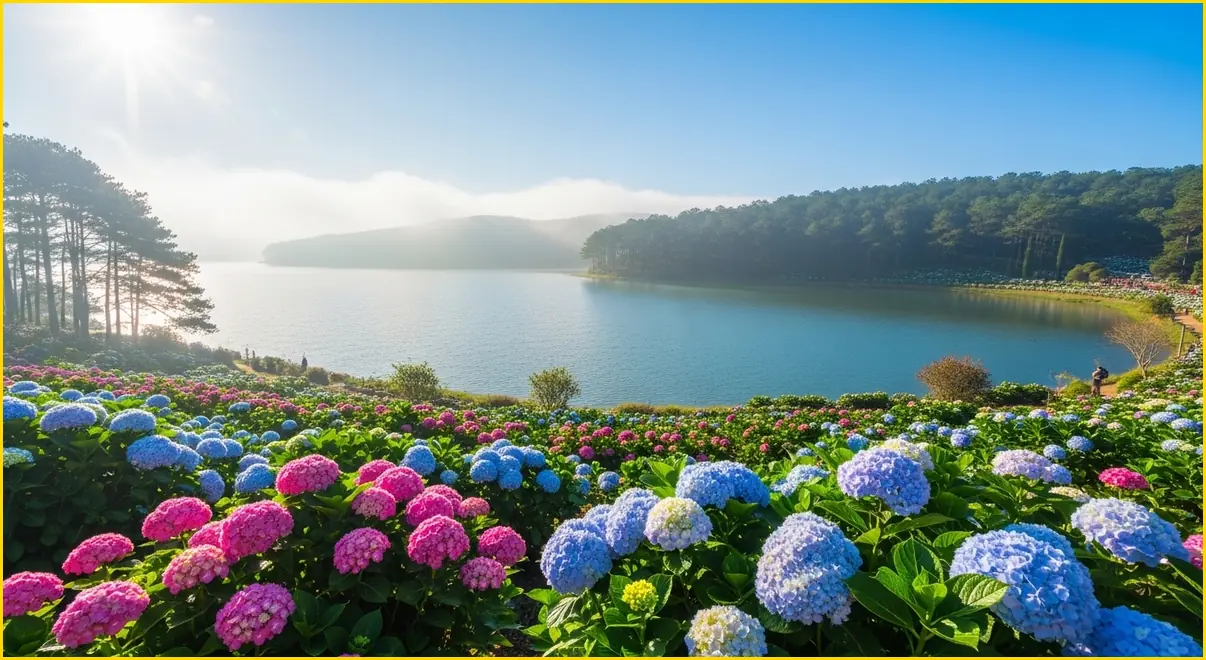 달랏은 연중 꽃이 피지만, 3월에는 특히 수국(Hydrangea)이 절정을 이룹니다. ‘가든 바이 더 레이크’나 ‘수국 가든’을 방문해 인생 사진을 남겨보세요. 또한 길거리 곳곳에 핀 분홍빛 야생화들이 도시 전체를 로맨틱하게 만듭니다.