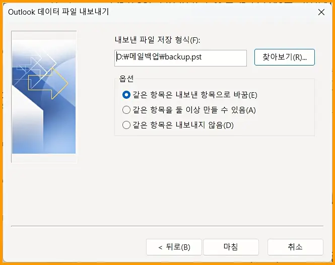 아웃룩 백업방법