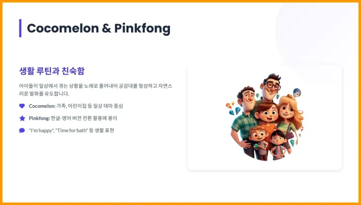 • 생활 루틴, 규칙, 감정 표현(I’m happy, I’m sad 등)을 영어로도 접하게 하고 싶은 경우