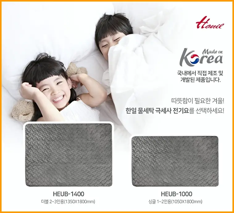 한일전기 전기요 더블 HEUB-1400은 단순히 몸을 따뜻하게 해주는 제품을 넘어, ‘위생(물세탁)’, ‘안전(자동 차단, 전자파 확인)’, 그리고 ‘신뢰(Made in Korea, 한일 브랜드)’까지 모든 것을 만족시키는 제품입니다.