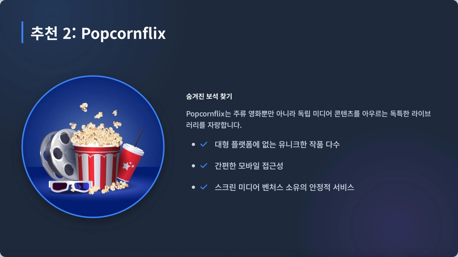 Popcornflix (팝콘플릭스): 주류와 독립 미디어를 아우르는 서비스