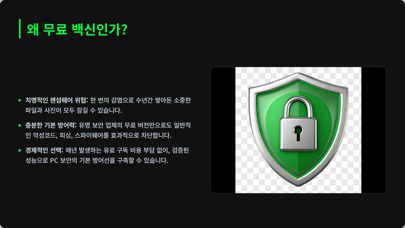 인터넷 뱅킹, 쇼핑, 업무 메일까지 모두 PC에서 처리하는 요즘, 한 번 랜섬웨어에 걸리면 수년간 쌓아 둔 파일과 사진이 한순간에 잠길 수 있다. 그렇다고 매년 유료 백신 비용을 내기 부담스럽다면, 성능 검증이 끝난 무료 백신으로 기본 방어선을 제대로 세우는 것이 현실적인 선택이다.