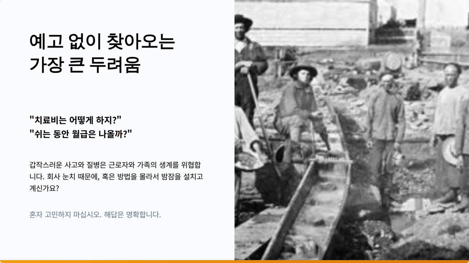 산재보험은 치료비, 휴업급여뿐만 아니라 장해급여, 유족급여, 그리고 재활 서비스까지 보장하는 평생 안전망입니다. 당장의 현금 몇 푼과 맞바꾸지 마십시오.