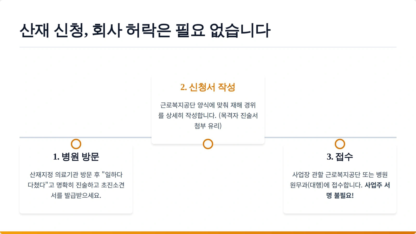 많은 분들이 아직도 “사장님이 산재 처리를 안 해준다”며 걱정하십니다. 2018년부터 법이 바뀌어 사업주의 서명이나 동의가 전혀 필요 없습니다. 회사가 산재 신청을 거부하거나 비협조적으로 나와도, 근로자가 직접 근로복지공단에 신청하면 됩니다.