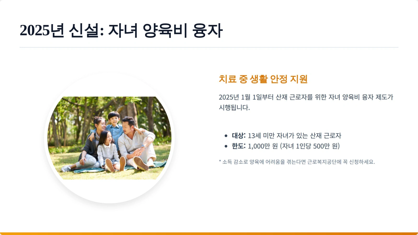 2025년 신설 혜택: 산재 근로자 자녀 양육비 융자