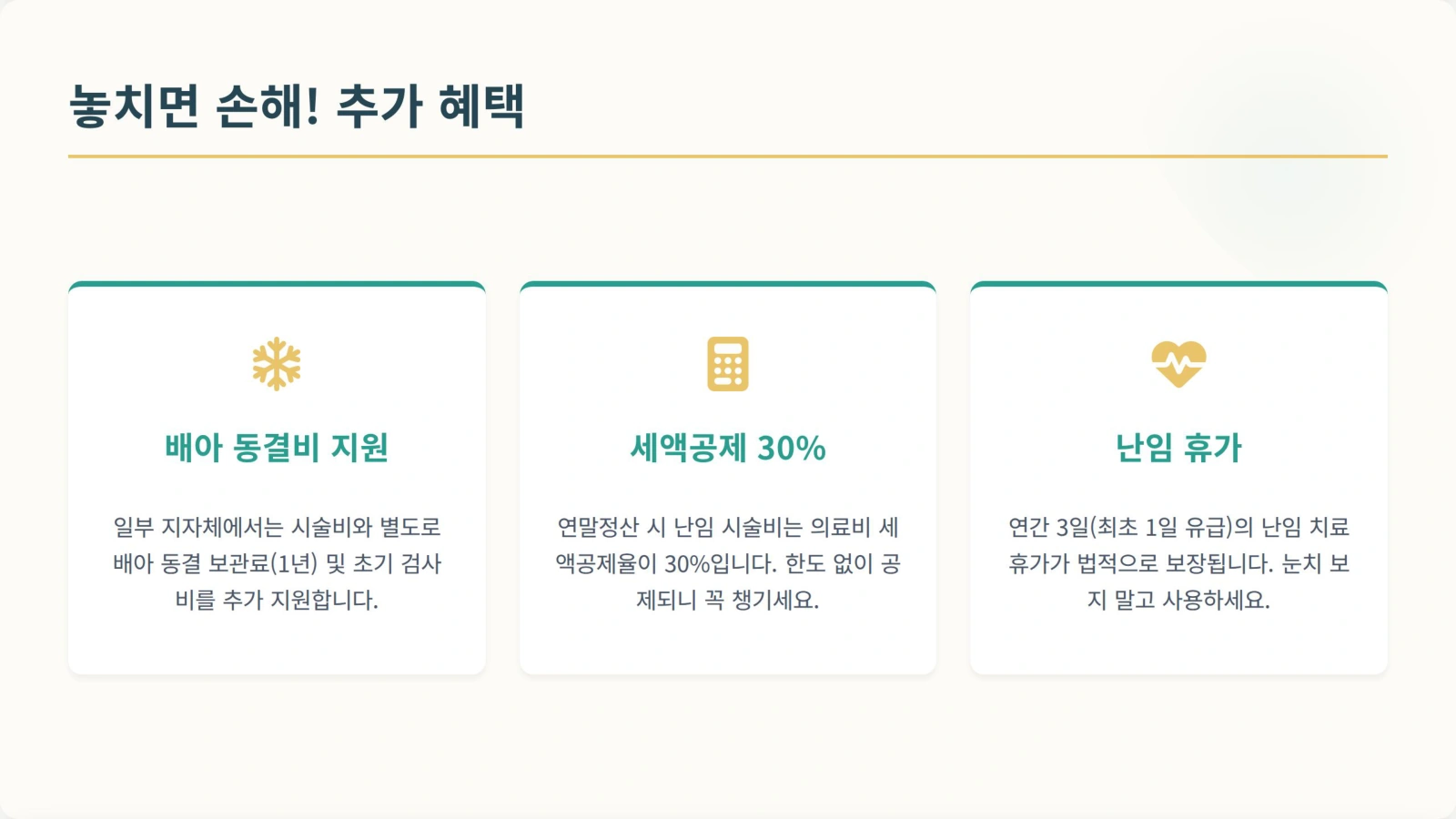 난임 시술비 지원 외에도 놓치면 아까운 혜택들이 있습니다.
